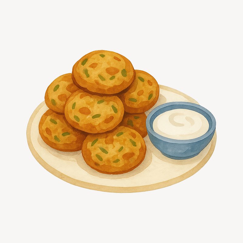 Delicious savory fritters with dip. https://www.rawpixel.com/image/19427109/delicious-savory-fritters-with-dipView license