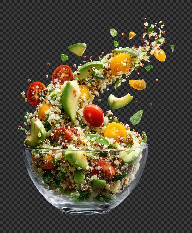 PNG Vibrant quinoa salad explosion. https://www.rawpixel.com/image/26278315/png-vibrant-quinoa-salad-explosionView license
