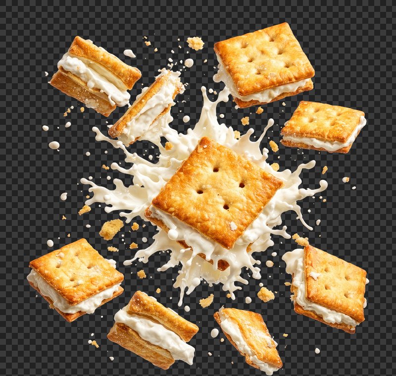 PNG Crackers splashing creamy delight. https://www.rawpixel.com/image/26063845/png-crackers-splashing-creamy-delightView license