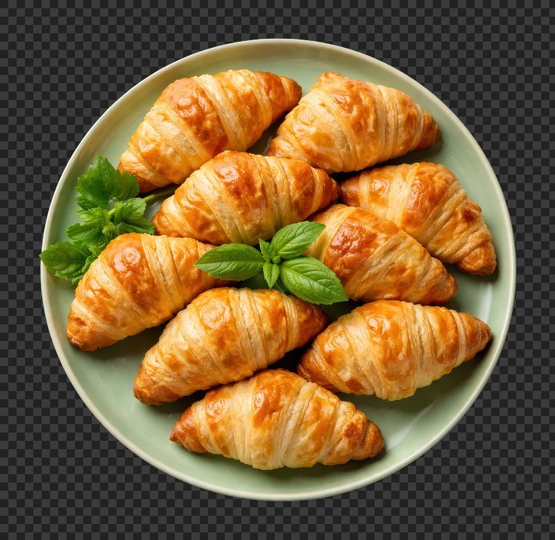 PNG Golden croissants with fresh mint. https://www.rawpixel.com/image/26068170/png-golden-croissants-with-fresh-mintView license