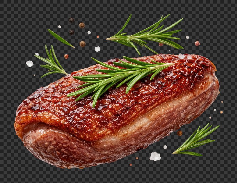 PNG Succulent roasted duck breast garnished. https://www.rawpixel.com/image/26059752/png-succulent-roasted-duck-breast-garnishedView license
