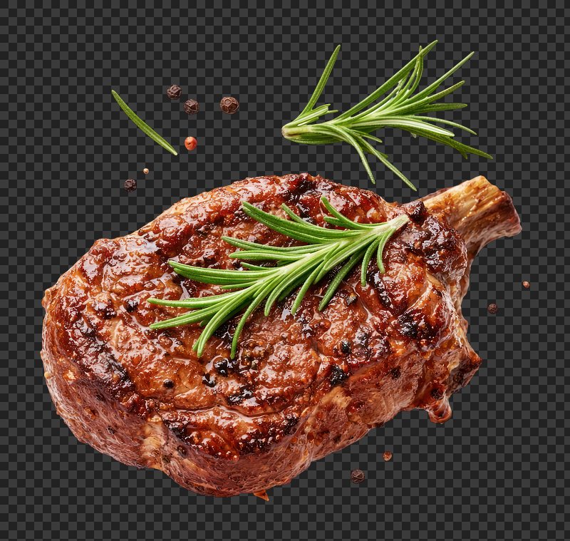 PNG Grilled steak garnished with rosemary. https://www.rawpixel.com/image/26067540/png-grilled-steak-garnished-with-rosemaryView license
