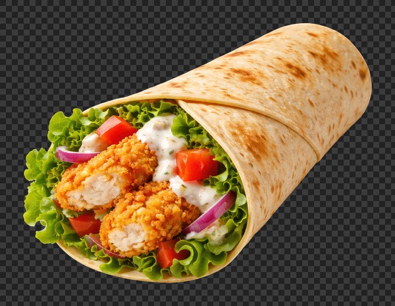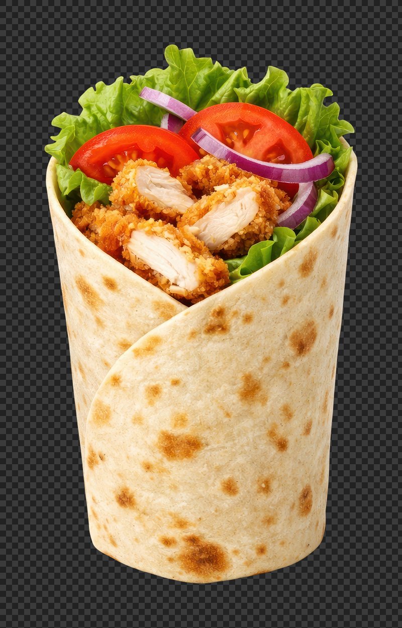 PNG Crispy chicken wrap delight. https://www.rawpixel.com/image/26149892/png-crispy-chicken-wrap-delightView license
