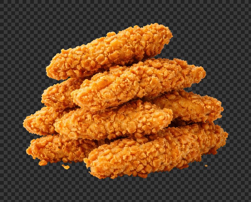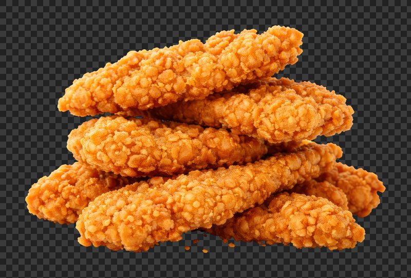 PNG Crispy golden chicken tenders stack. https://www.rawpixel.com/image/26150090/png-crispy-golden-chicken-tenders-stackView license