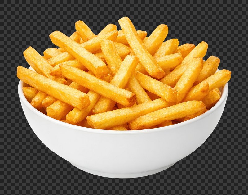 PNG Crispy golden fries in bowl. https://www.rawpixel.com/image/26152686/png-crispy-golden-fries-bowlView license