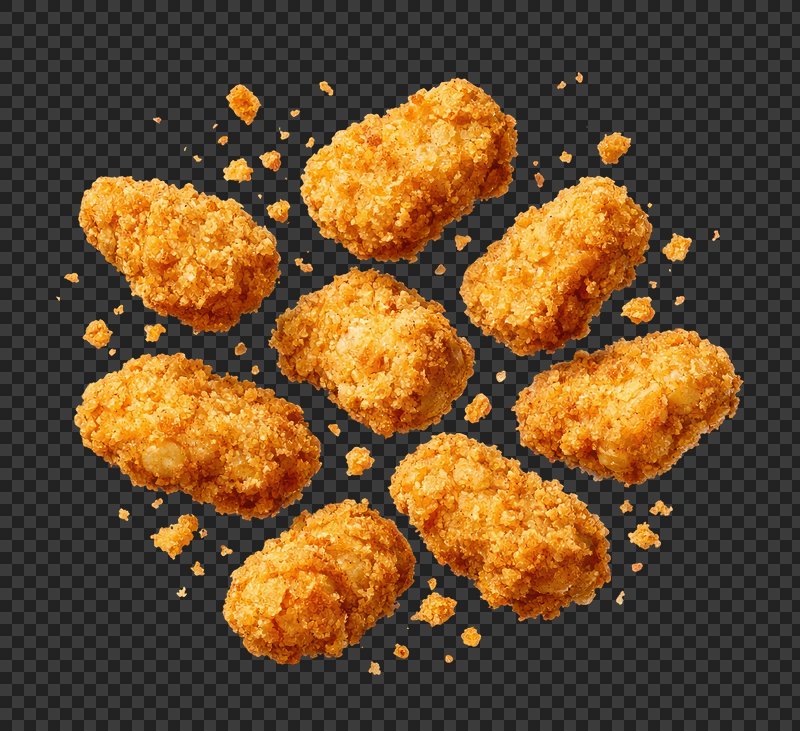 PNG Crispy golden chicken nuggets floating. https://www.rawpixel.com/image/26055704/png-crispy-golden-chicken-nuggets-floatingView license