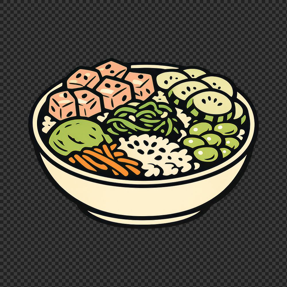 Colorful nutritious poke bowl illustration. https://www.rawpixel.com/image/25915938/colorful-nutritious-poke-bowl-illustrationView license