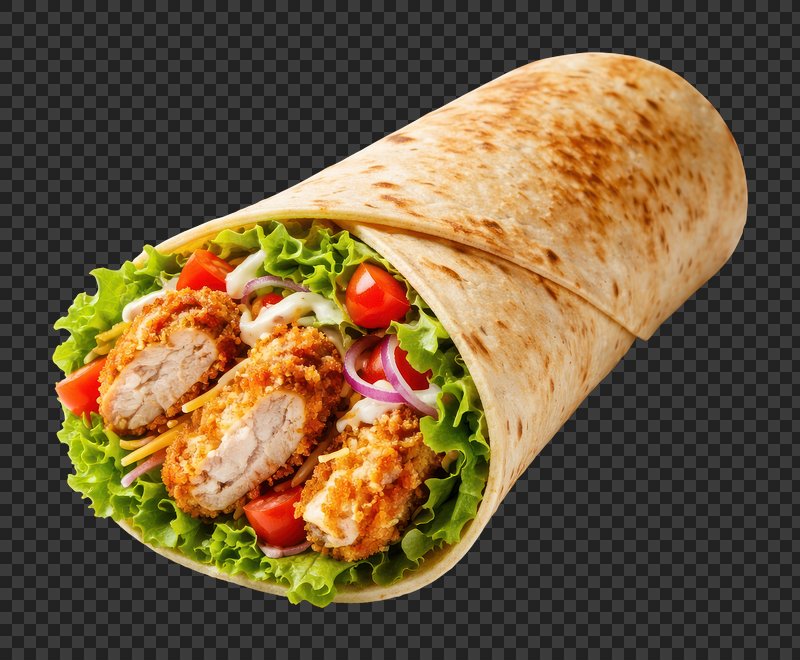 PNG Crispy chicken wrap delight. https://www.rawpixel.com/image/26151174/png-crispy-chicken-wrap-delightView license