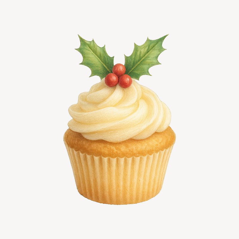 Festive cupcake with holly decoration. https://www.rawpixel.com/image/21621425/festive-cupcake-with-holly-decorationView license