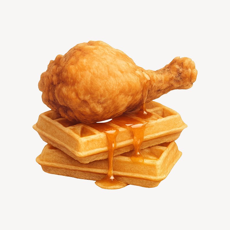 Crispy chicken atop syrupy waffles. https://www.rawpixel.com/image/21691193/crispy-chicken-atop-syrupy-wafflesView license