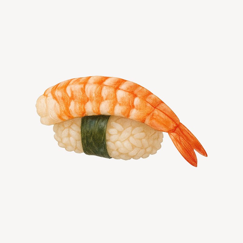 Realistic shrimp sushi illustration. https://www.rawpixel.com/image/21689392/realistic-shrimp-sushi-illustrationView license