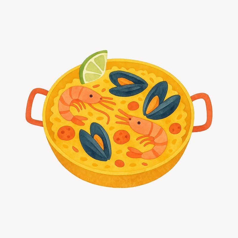 Colorful seafood paella illustration. https://www.rawpixel.com/image/20745638/colorful-seafood-paella-illustrationView license