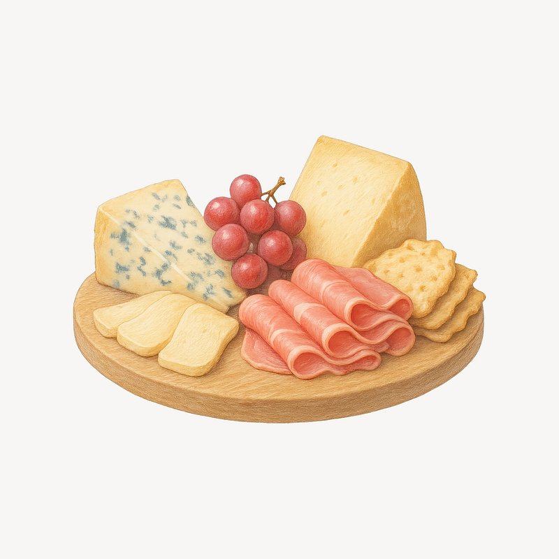 Cheese platter with grapes illustration. https://www.rawpixel.com/image/21691280/cheese-platter-with-grapes-illustrationView license