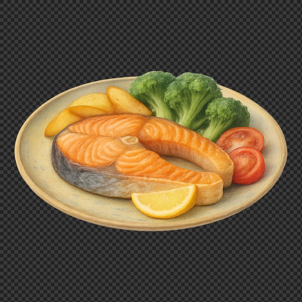 PNG Salmon plate with vegetables. https://www.rawpixel.com/image/18460537/png-salmon-plate-with-vegetablesView license