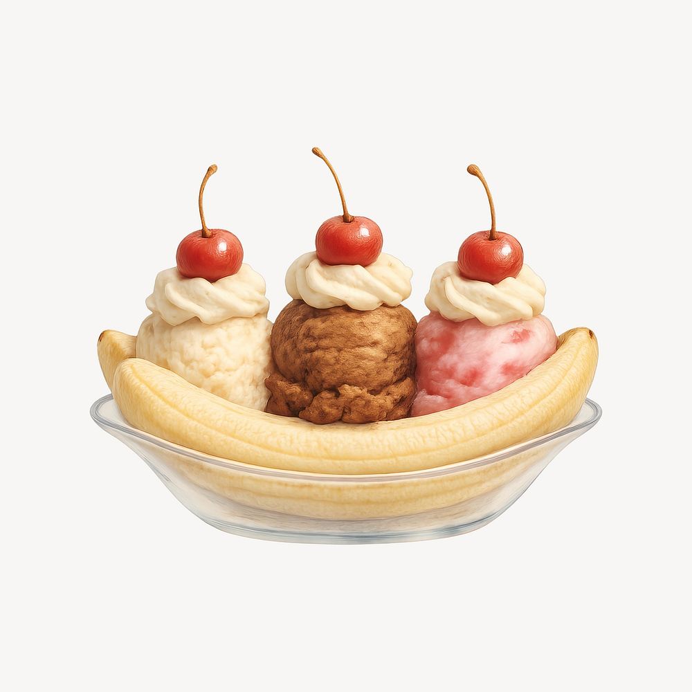 Delicious banana split illustration. https://www.rawpixel.com/image/21690067/delicious-banana-split-illustrationView license