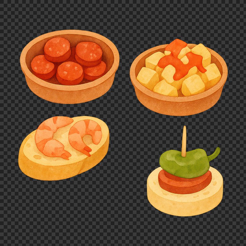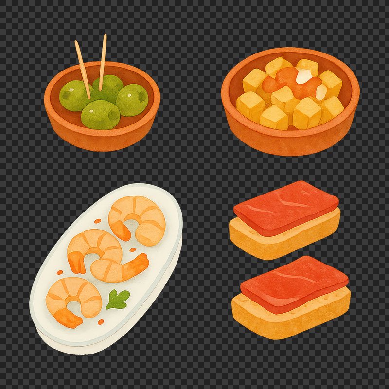 PNG Delicious Spanish tapas illustration. https://www.rawpixel.com/image/19031164/png-delicious-spanish-tapas-illustrationView license