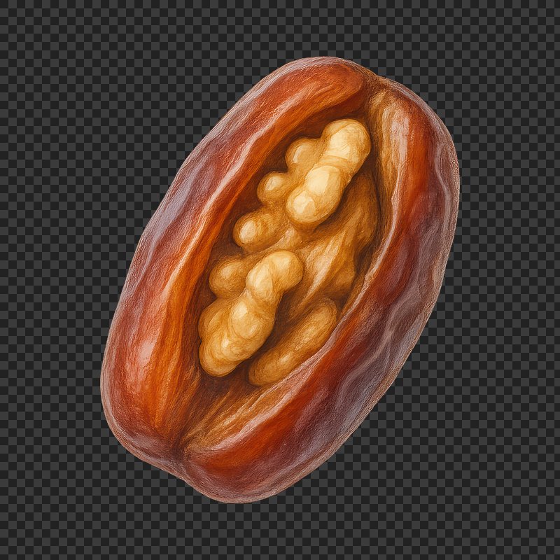 PNG Realistic date with walnut filling. https://www.rawpixel.com/image/20230029/png-realistic-date-with-walnut-fillingView license