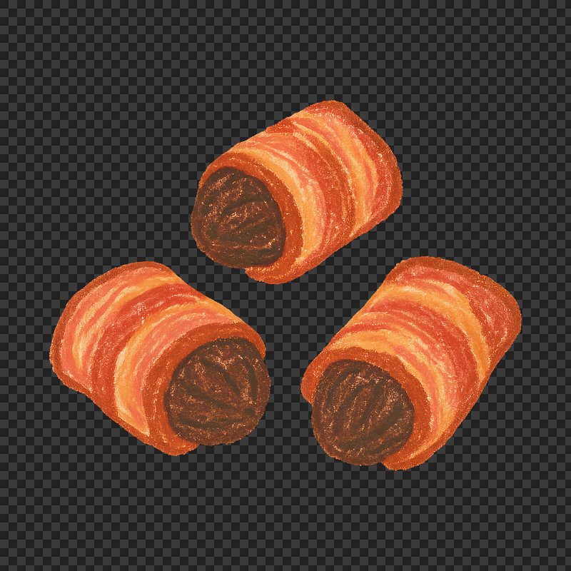 PNG Bacon-wrapped dates illustration https://www.rawpixel.com/image/22086972/png-bacon-wrapped-dates-illustrationView license