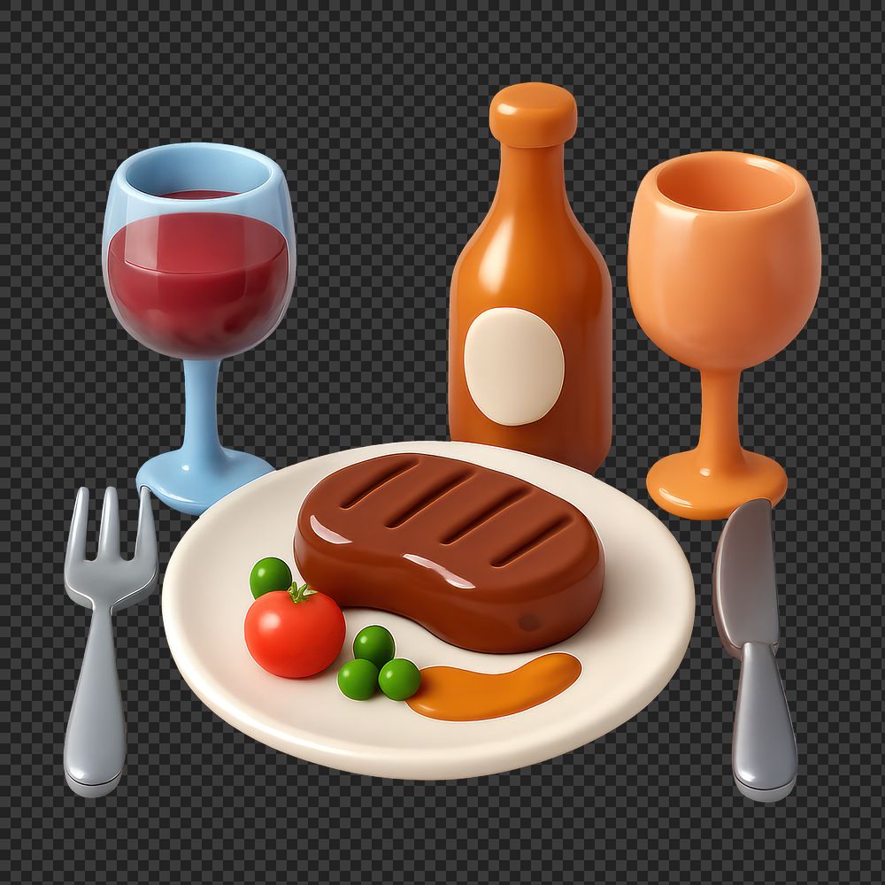 PNG 3D steak dinner illustration. https://www.rawpixel.com/image/20206485/png-steak-dinner-illustrationView license