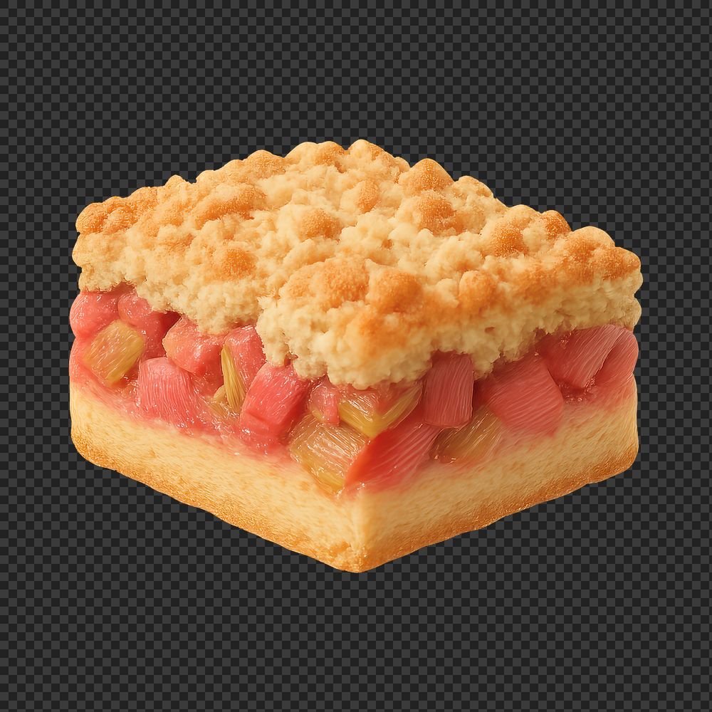 PNG Delicious rhubarb crumble slice. https://www.rawpixel.com/image/20233864/png-delicious-rhubarb-crumble-sliceView license