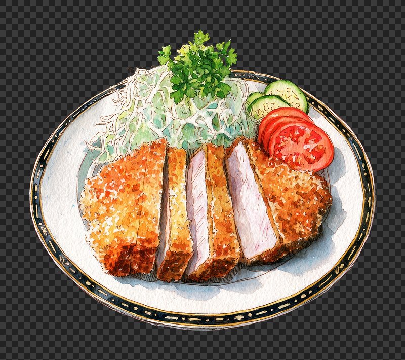 PNG Tonkatsu food illustration watercolor. https://www.rawpixel.com/image/19175607/png-tonkatsu-food-illustration-watercolorView license