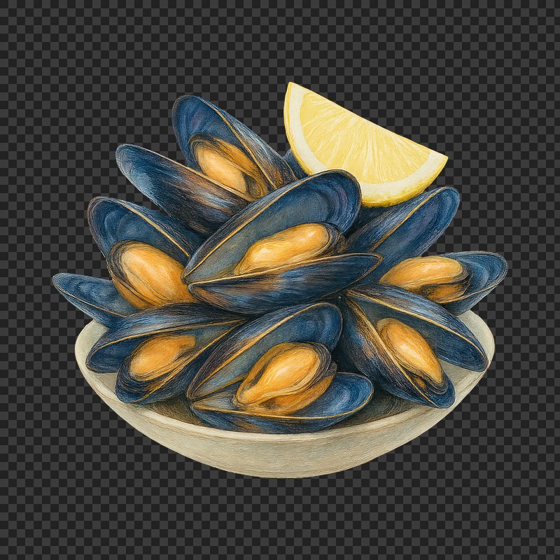 PNG Mussels with lemon slice illustration. https://www.rawpixel.com/image/20230762/png-mussels-with-lemon-slice-illustrationView license