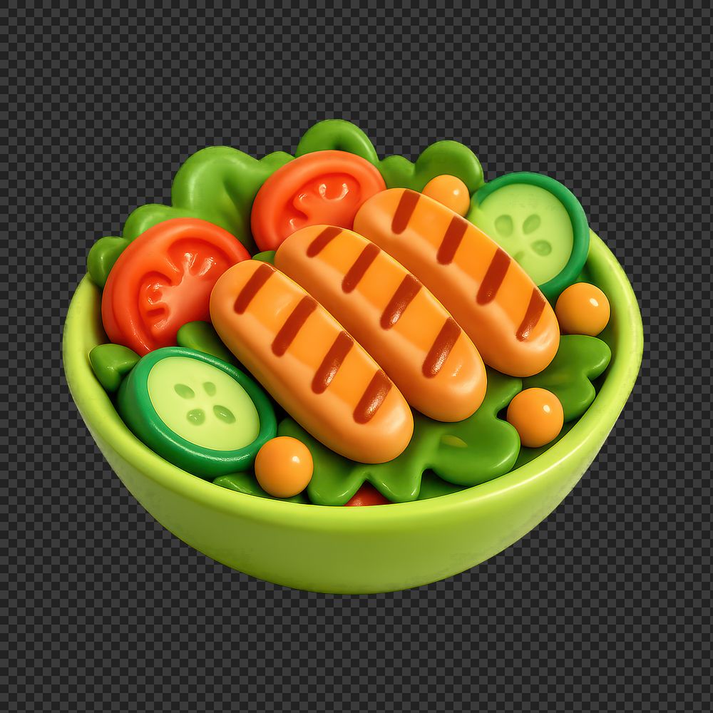 PNG Colorful salad with grilled sausages. https://www.rawpixel.com/image/20324512/png-colorful-salad-with-grilled-sausagesView license