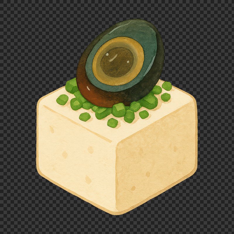 PNG Tofu topped with century egg. https://www.rawpixel.com/image/19029782/png-tofu-topped-with-century-eggView license