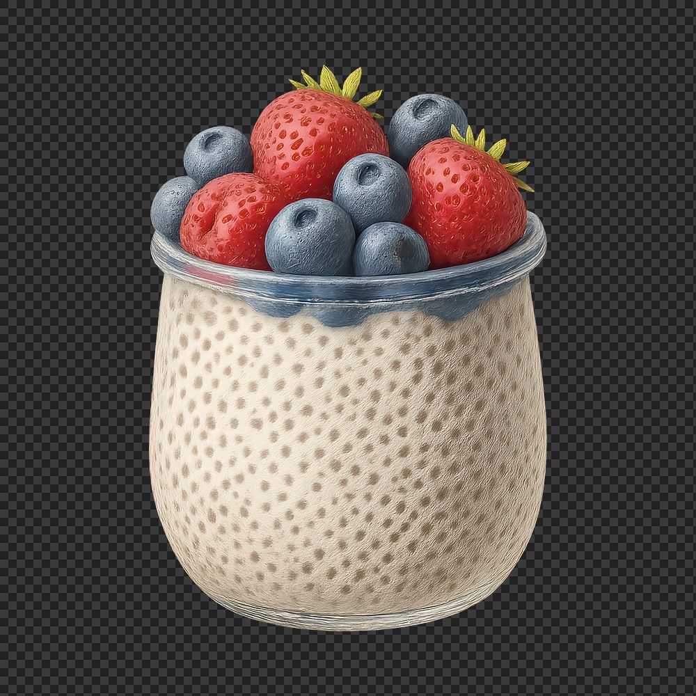 PNG Chia pudding with fresh berries. https://www.rawpixel.com/image/20232407/png-chia-pudding-with-fresh-berriesView license