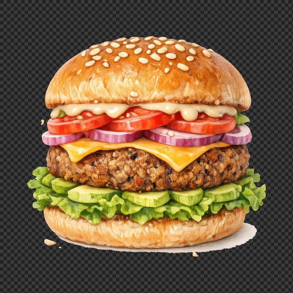 PNG Delicious vegetarian burger illustration. https://www.rawpixel.com/image/25388697/png-delicious-vegetarian-burger-illustrationView license