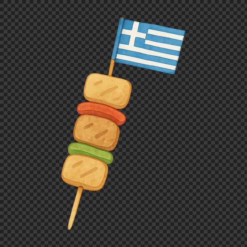 PNG Greek skewer with flag illustration. https://www.rawpixel.com/image/19179425/png-greek-skewer-with-flag-illustrationView license