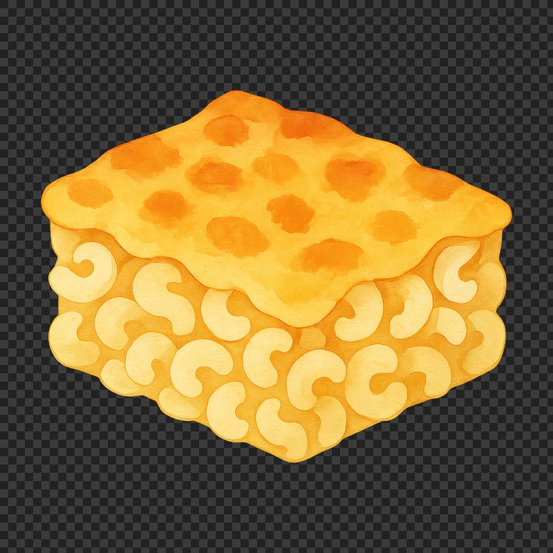 PNG Illustration of cheesy macaroni block. https://www.rawpixel.com/image/18866180/png-illustration-cheesy-macaroni-blockView license