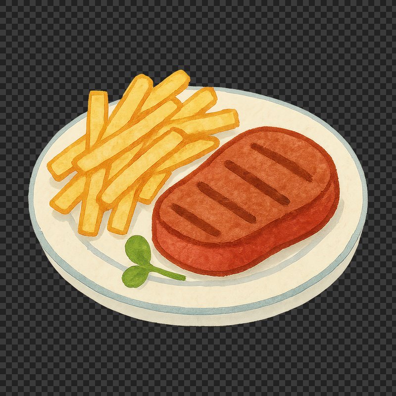 PNG Illustration of steak and fries https://www.rawpixel.com/image/18711038/png-illustration-steak-and-friesView license