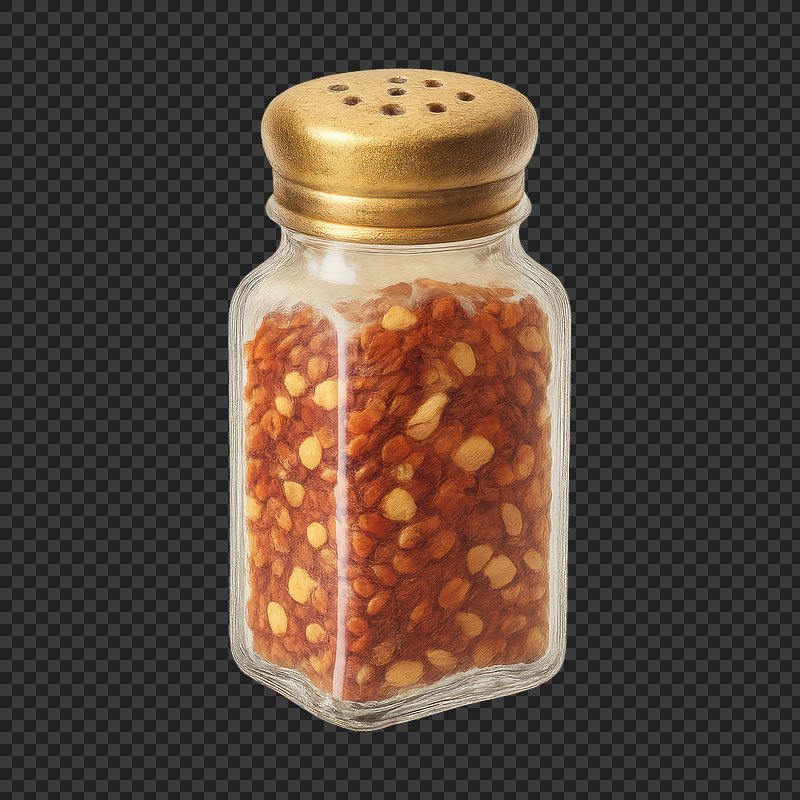 PNG Spicy chili flakes in shaker. https://www.rawpixel.com/image/20200368/png-spicy-chili-flakes-shakerView license