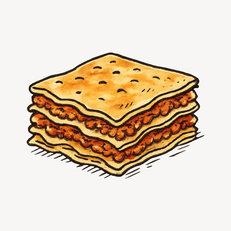 Layered savory lasagna illustration. https://www.rawpixel.com/image/21388803/layered-savory-lasagna-illustrationView license