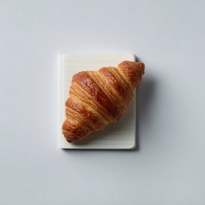 Croissant resting on a journal white food minimalist. https://www.rawpixel.com/image/18483245/croissant-resting-journal-white-food-minimalistView license
