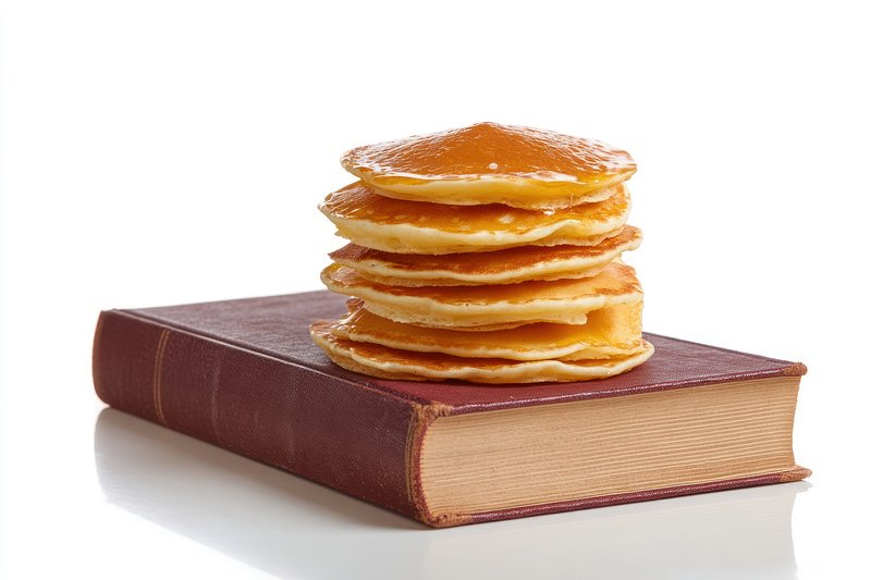 Stack of pancakes beside a hardcover book white food photography. https://www.rawpixel.com/image/18483210/stack-pancakes-beside-hardcover-book-white-food-photographyView license