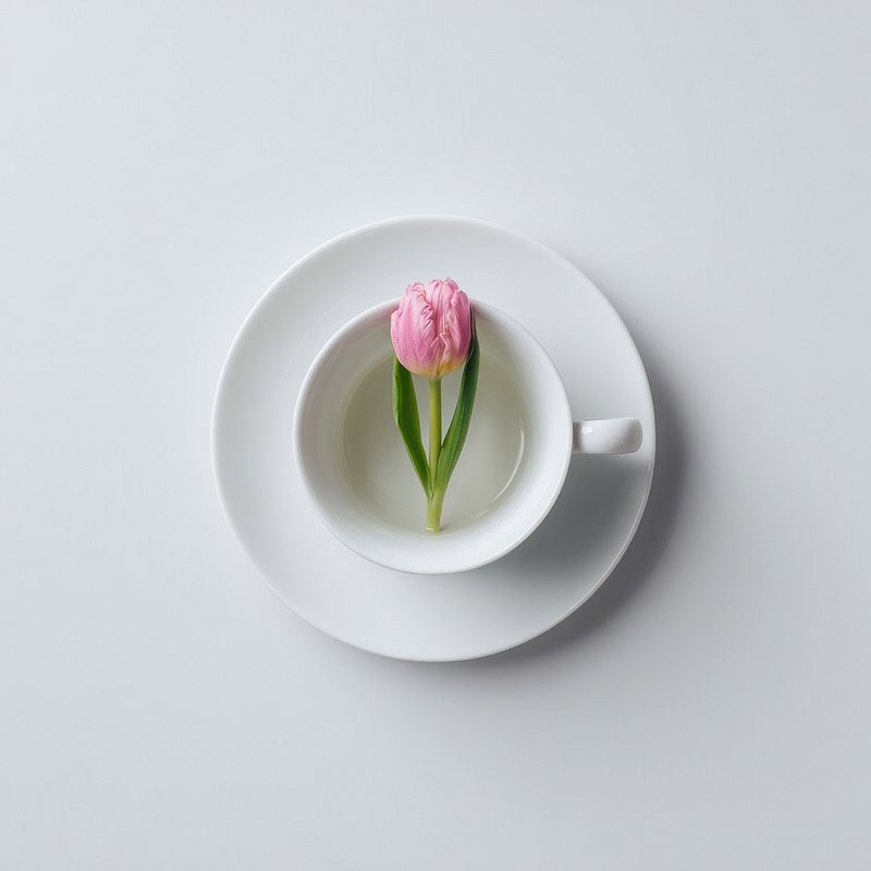 Single tulip in teacup composition minimalist saucer. https://www.rawpixel.com/image/18491038/single-tulip-teacup-composition-minimalist-saucerView license