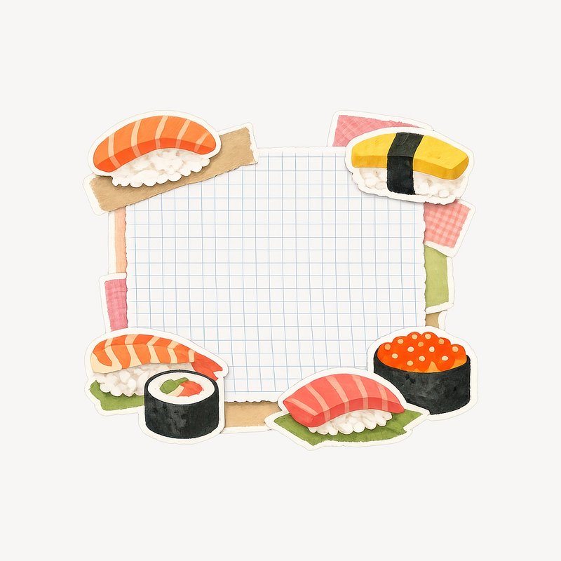 Colorful sushi-themed notebook frame. https://www.rawpixel.com/image/25773718/colorful-sushi-themed-notebook-frameView license
