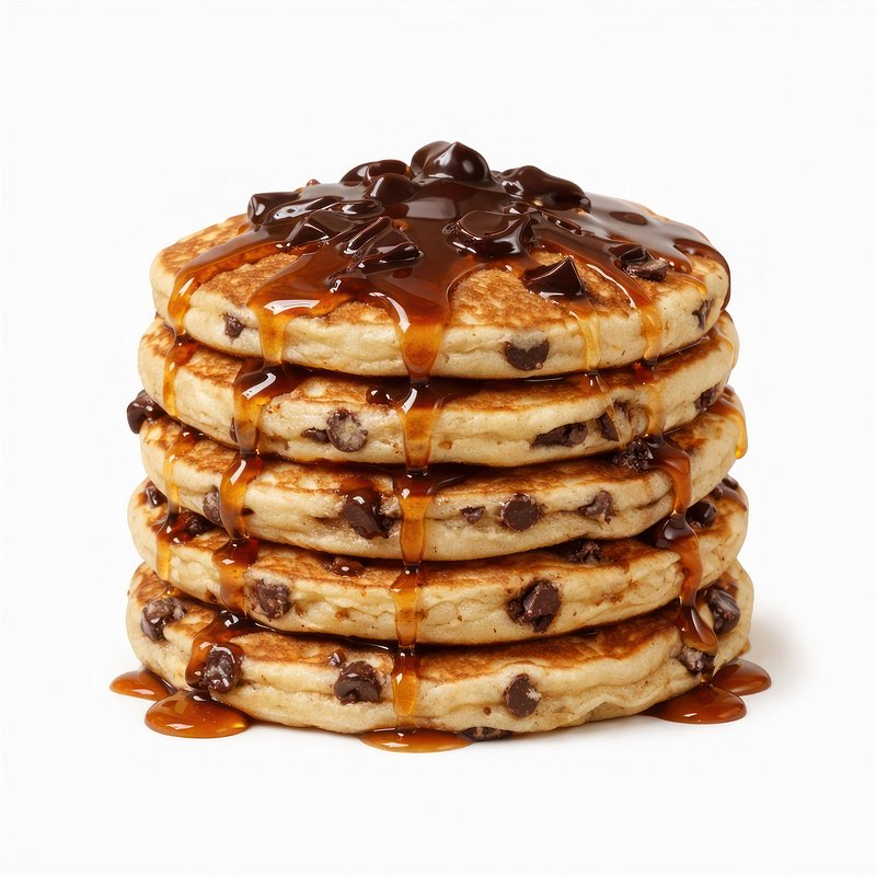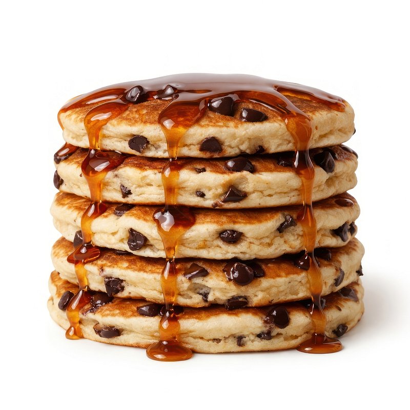 Chocolate chip pancakes with syrup. https://www.rawpixel.com/image/26127651/chocolate-chip-pancakes-with-syrupView license