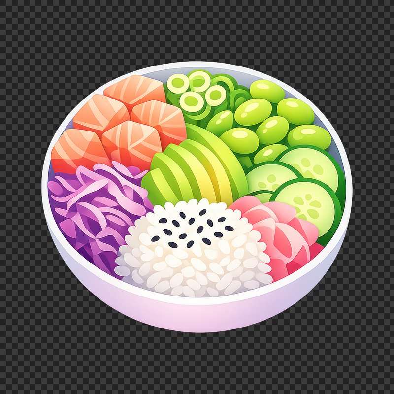 PNG Colorful fresh sushi bowl https://www.rawpixel.com/image/25557617/png-colorful-fresh-sushi-bowlView license