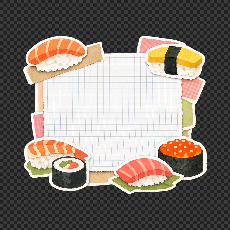 PNG Colorful sushi-themed notebook frame. https://www.rawpixel.com/image/25618386/png-colorful-sushi-themed-notebook-frameView license