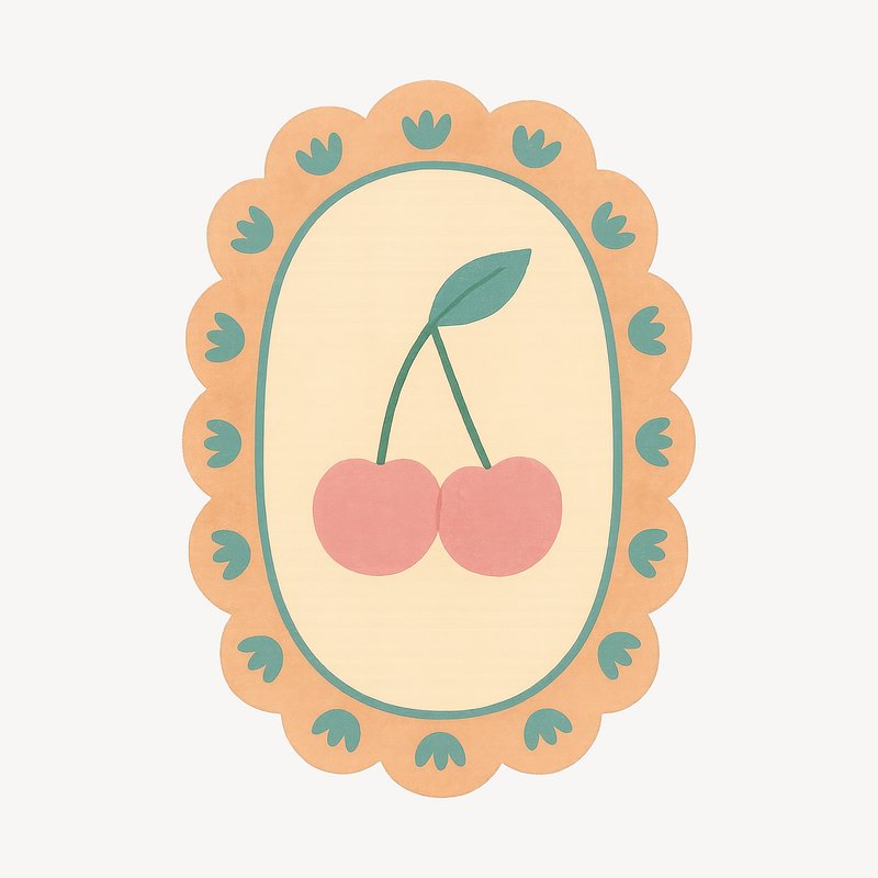 Vintage cherry illustration with scalloped border. https://www.rawpixel.com/image/19558082/vintage-cherry-illustration-with-scalloped-borderView license