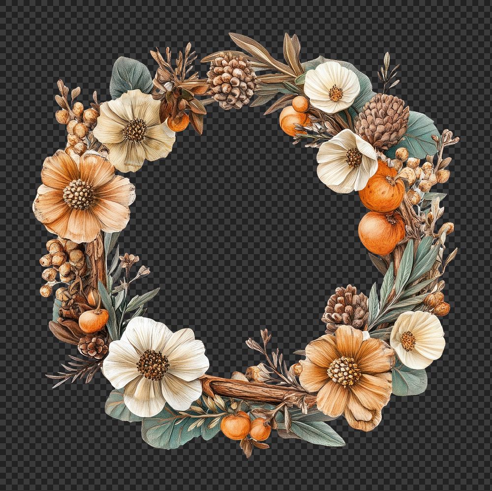 PNG Autumn floral wreath illustration. https://www.rawpixel.com/image/20887571/png-autumn-floral-wreath-illustrationView license