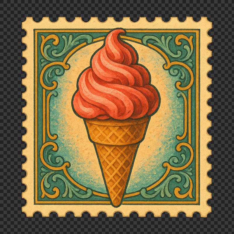PNG Vintage dessert-themed postage stamp. https://www.rawpixel.com/image/22970322/png-vintage-dessert-themed-postage-stampView license