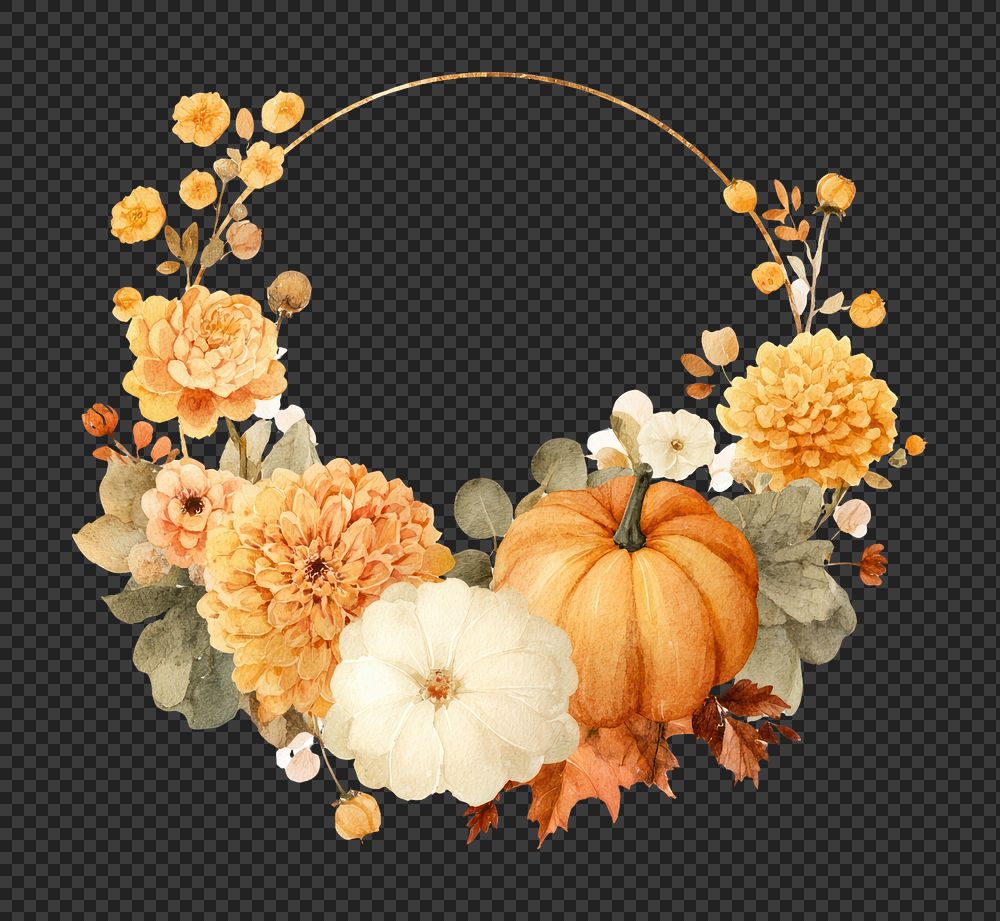 PNG Autumn floral pumpkin wreath illustration. https://www.rawpixel.com/image/20887121/png-autumn-floral-pumpkin-wreath-illustrationView license