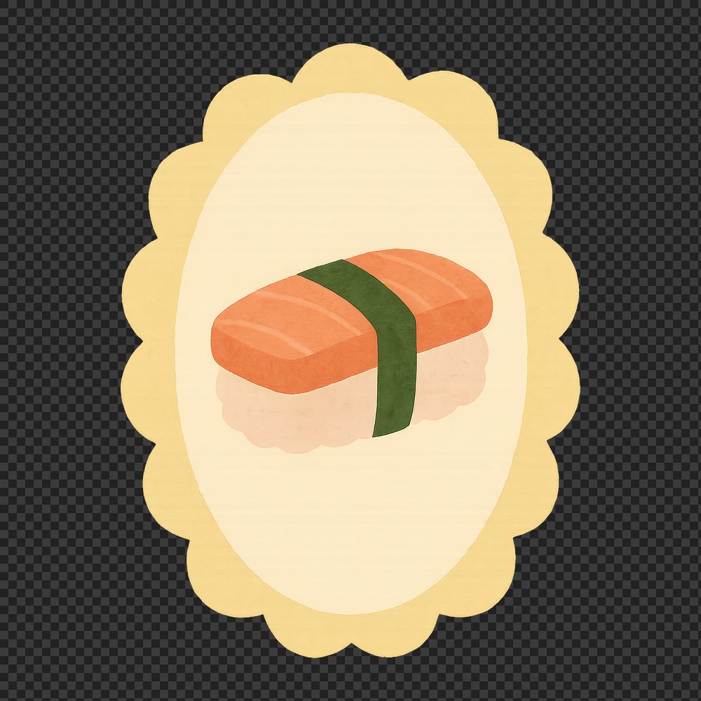 PNG Illustrated sushi with scalloped border. https://www.rawpixel.com/image/18701162/png-illustrated-sushi-with-scalloped-borderView license
