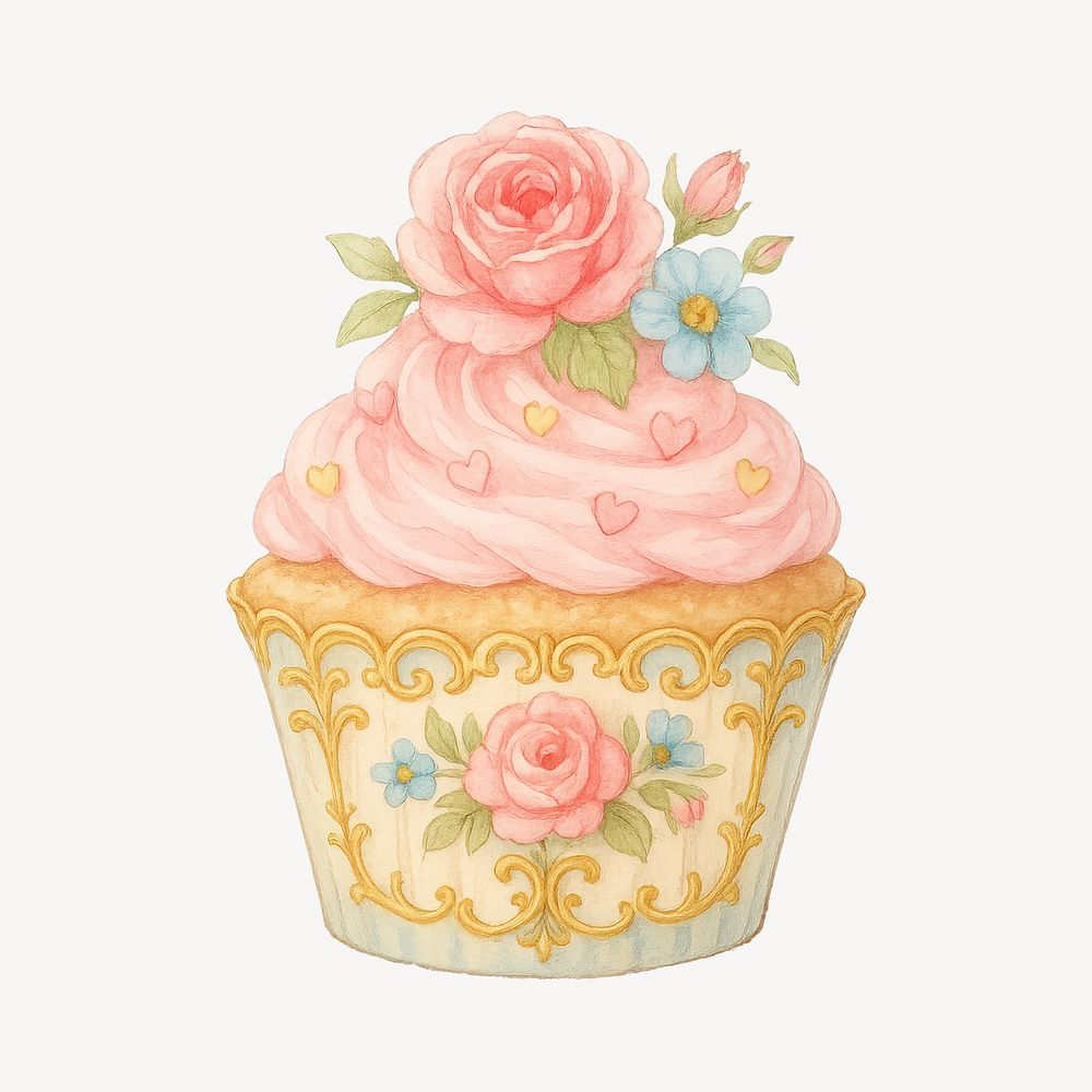 Elegant floral cupcake illustration. https://www.rawpixel.com/image/19064284/elegant-floral-cupcake-illustrationView license