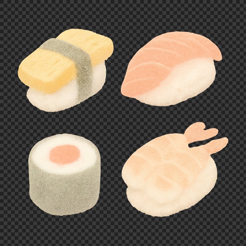 PNG Cute felt sushi illustration https://www.rawpixel.com/image/18552731/png-cute-felt-sushi-illustrationView license
