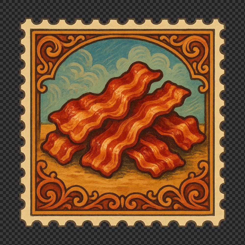PNG Vintage bacon stamp illustration. https://www.rawpixel.com/image/18231200/png-vintage-bacon-stamp-illustrationView license
